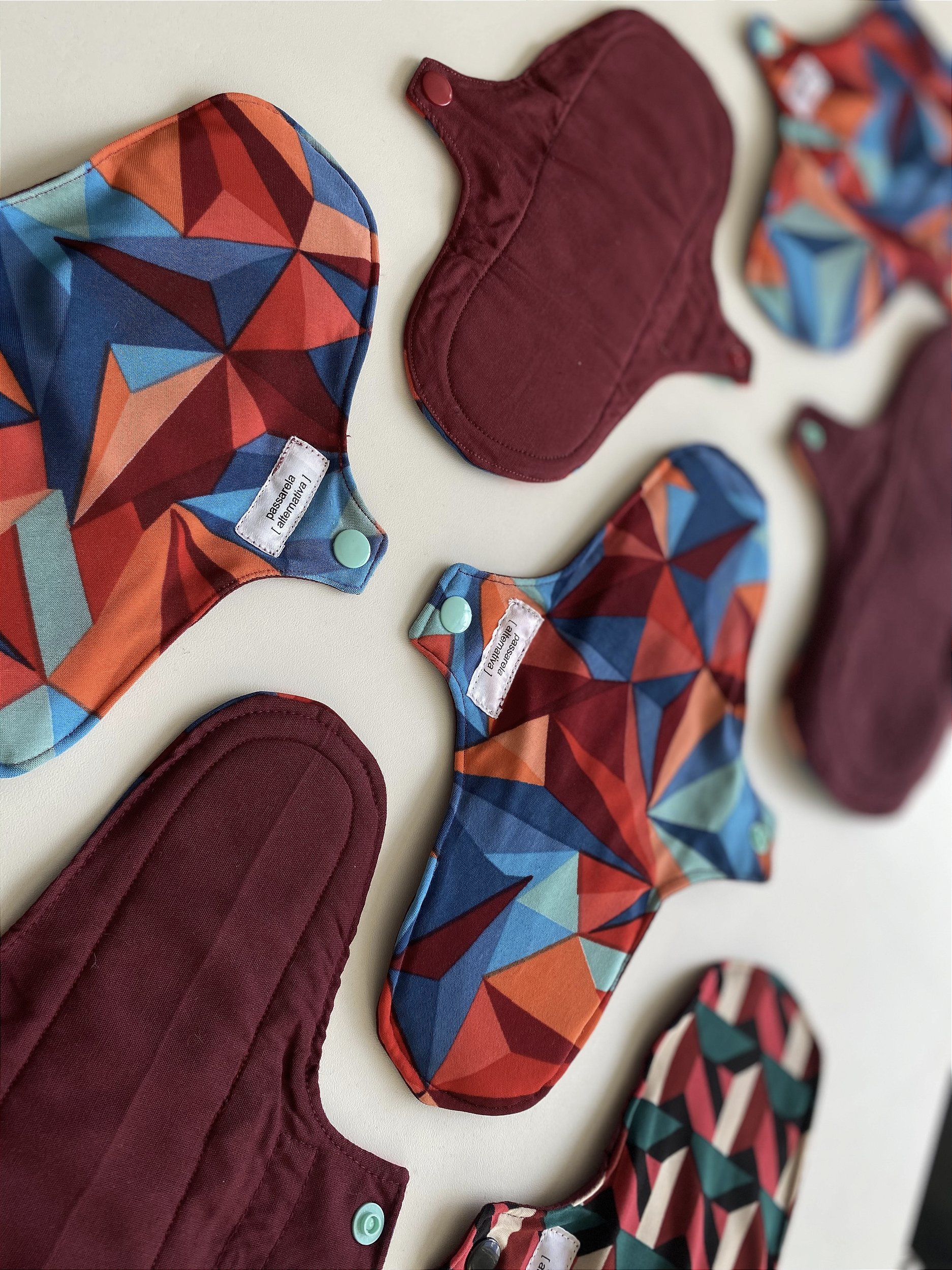 Absorvente Reutilizável feito com tecidos hipoalergênicos, tecnológicos, impermeáveis e respiráveis, mega absorventes e com toque macio e delicado. Possuem formato anatômico, botões de segurança para prender na calcinha de forma confortável e costuras estratégicas tudo para prevenir vazamentos. São muito fáceis de lavar e secar, baixe nossa cartilha de menstruação no link: